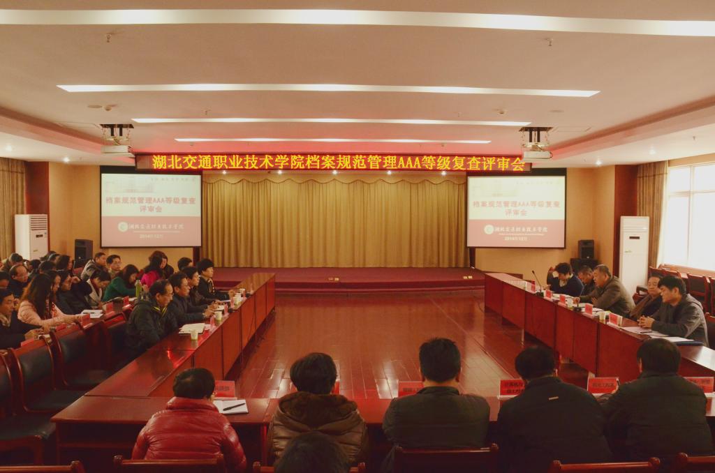 复评会上,院长陈方晔作工作汇报。学院继2011年通过档案管理AAA等级复评后,坚持AAA标准不放松,做到6个“始终”,不断创新与提升档案基础业务管理水平、硬件软件建设和开拓信息化建设水平,发挥了档案在各项工作中的作用,使档案信息资源利用和发展得到进一步提升。学院于2011年被授予“全省档案统计工作先进单位”荣誉称号,2013年,在我省首次开展档案工作绩效考核中获“2013年度全省档案工作绩效考核优秀单位”荣誉称号,是获此殊荣的8所高职院校之一,2014年第三次获得“湖北省档案工作先进集体”称号,也是唯一获奖的高职院校。
