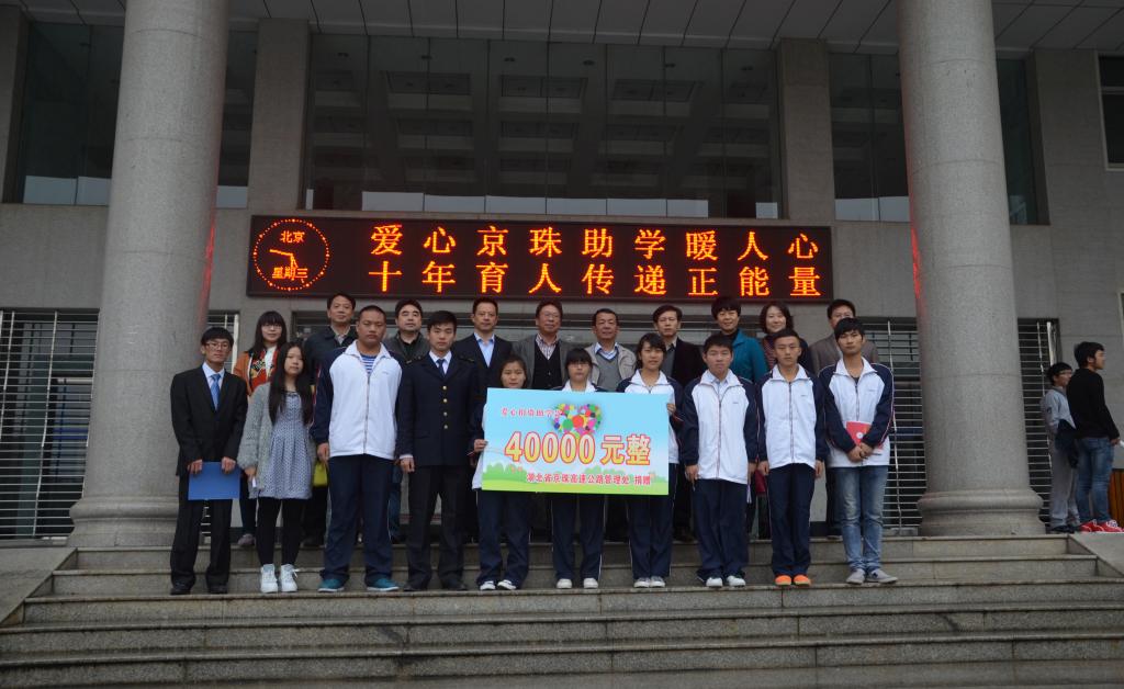 2005年4月15日,一直关心、支持交通教育的京珠高速公路管理处启动爱心助学活动,京珠高速管理处领导及全体员工积极响应并捐款,在湖北交院设立了“京珠高速捐资助学基金”,第一笔4万元善款资助了学院25名“品学兼优”的贫困大学生。如今,京珠高速的义行善举已铸起一座爱的丰碑——累计捐赠助学善款近40万元,托起236名贫困学生的大学梦。