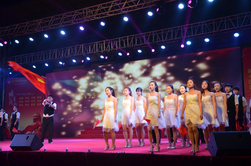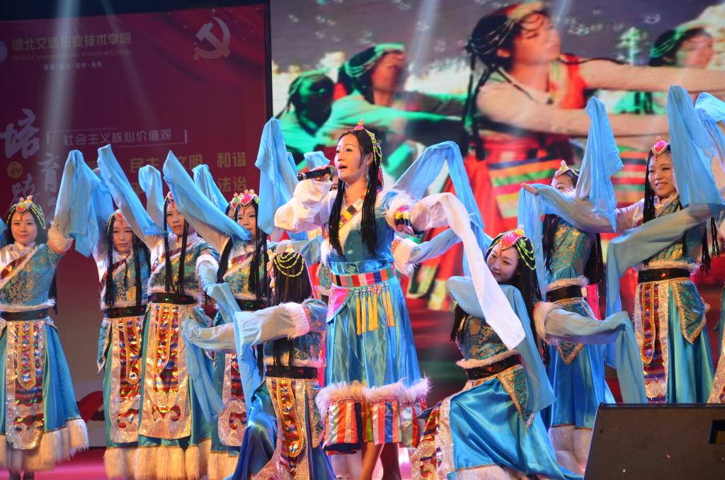 伴随着灵动的舞姿,高亢的歌声,一曲《青藏高原》,为此次文艺汇演拉开序幕。随后,我院各系部、大学生社团联合倾心排演的节目依次精彩上演。广播台《感悟校训》,深度解读了“重德、励志、笃学、尚能”的学院校训,展现出我院的办学宗旨和文化内涵;庄重典雅的汉朝舞、柔媚灵巧的新疆舞、豪迈霸气的蒙古舞让台下的观众领略我国少数民族舞姿的美妙;系部风采T台秀展示出了各系部专业的职业特色,将文艺汇演推向高潮;学院自己改编过歌词的《小苹果》不仅是大学生对时尚流行的捕捉,歌词里透露的更是交院学子对于交院浓烈的爱;随后的舞蹈《我的老父亲》、《青春骊歌》、《roly poly》分别展示了对家人的思念、进入大学的青春律动和新时期大学生朝气蓬勃的精神风貌;音乐剧《那一年,这一天》讲述了青春校园内动人美丽的故事;校武术社表演的《中华传统武术》展示了习武之人外修体魄,内修品德的刚毅柔情;校街舞社带来的表演《we will rock you》展示了年轻人酷炫热辣的魅力;压轴的大合唱校歌《路在心上》与革命歌曲《走向复兴》更是将会场内的气氛推向高潮,将当代大学生爱校爱国的情怀表达得淋漓尽致。晚会在大合唱中落幕,院领导上台与演职人员合影留念。