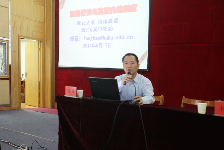 为进一步贯彻落实中央财经法规,严肃财经纪律,提高领导干部执行财经法规的自觉性,规范财务管理,从源头上防止违反财经纪律行为的发生,9月18日下午,财政部绩效考评专家、省审计组专家、湖北大学冯浩教授应邀来我院为学院全体副科及以上干部做财经纪律与高校内部控制制度方面的专题讲座。全院副科级及以上干部,西区管理部、北区管理部、各处室(系部)及产业公司负责同志及部门具体负责预算编制人员、兼职资产管理人员和学院全体财务人员等听取了本次讲座。本次学习活动由副院长王同庆主持。