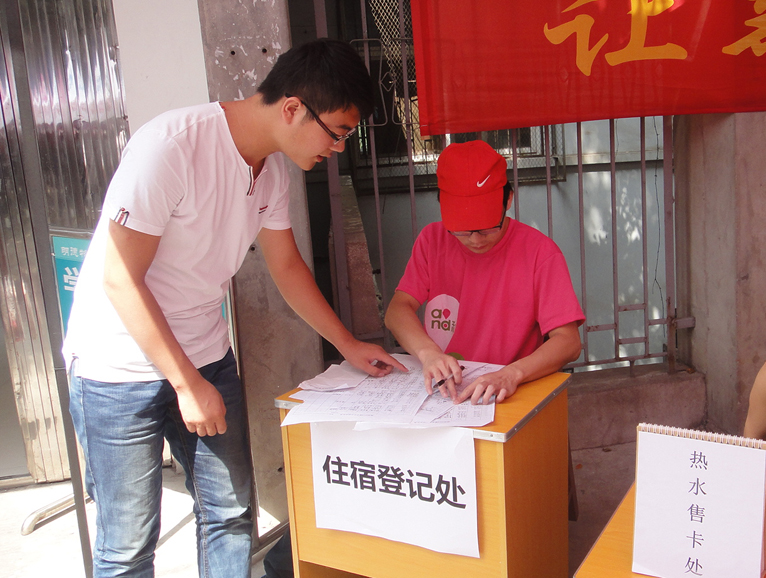 为保证远道而来的新生及家长下车便能快速找到报名点、能及时办理入学手续,工作人员勤勤恳恳、坚守一线、领导亲力亲为,用自己的实际行动践行党的群众路线。后勤处胡超群处长见新生及家长疲惫的提着沉重的大包小包,他热情地接过沉重的大包亲自引领送到五层宿舍楼,下楼时新生家长握住胡处长的手说:“小孩在这上学我们当家长的放心!”