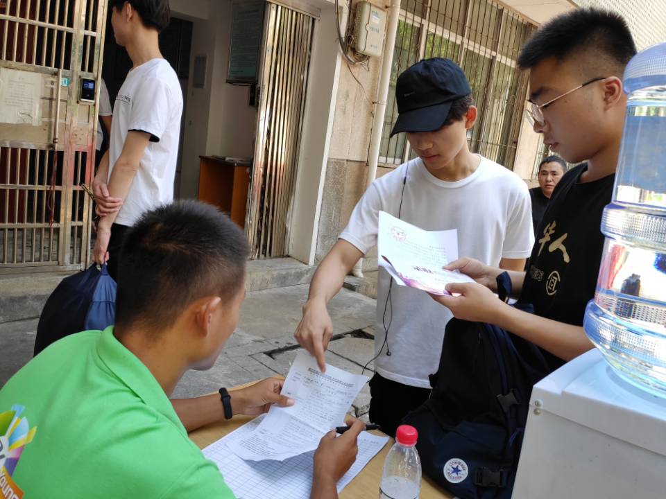 9月6日,在迎新的大潮中,一个头戴藏蓝色遮阳帽,身着白色T恤的男生在忙着给新生搬运行李,指路。“我叫何邵秋,也是2019级新生。”该男生向记者介绍道。