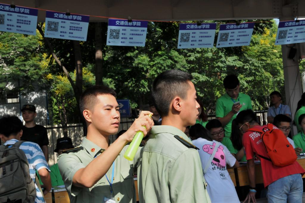 “大二士官生经历了一年的学习和训练身体和意志等各方面综合素质有了很大提高,通过这次迎新活动很好地在家长面前展示了学校人才培养和素质教育的成果,让家长能放心地把孩子交给我们。”物流与交通管理学院的院长石小平向记者说明了让大二士官生参与迎新活动的用意。交通信息学院的专职副书记余诗隽也表示:“这些参与迎新的大二士官生之后还会担任军训小教官,这不仅是对他们自身的锻炼,让他们在实践中提升军事技能;也可以让新生提前感受和了解接下来的军训,同时激发新生参与学校活动的积极性和热情。”(摄影/贺婷婷)