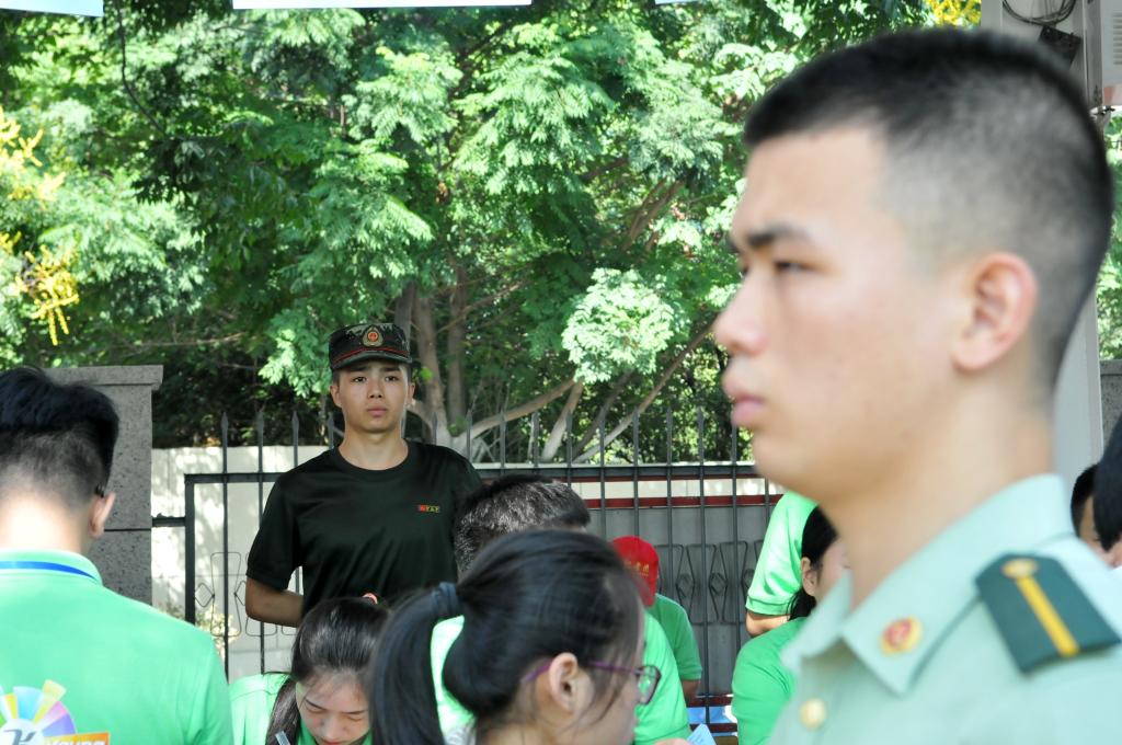 士官生们分两列站在各自学院迎新点两侧,自动将前来报到的新生限定于规定区域,保障了现场的秩序。记者发现有不少新生和家长拿出手机拍这些士官生,还有前来报到的士官新生向迎新老师询问自己将来是不是也有机会参加类似迎新的学校活动。“看到他们在那里笔直地站着,就有种力量感,人都感觉精神了。”现场有新生表示。有位家长跟记者说:“今年我的儿子也报了士官生,看着他们上一届的学长,我觉得我们的选择没有错!”
