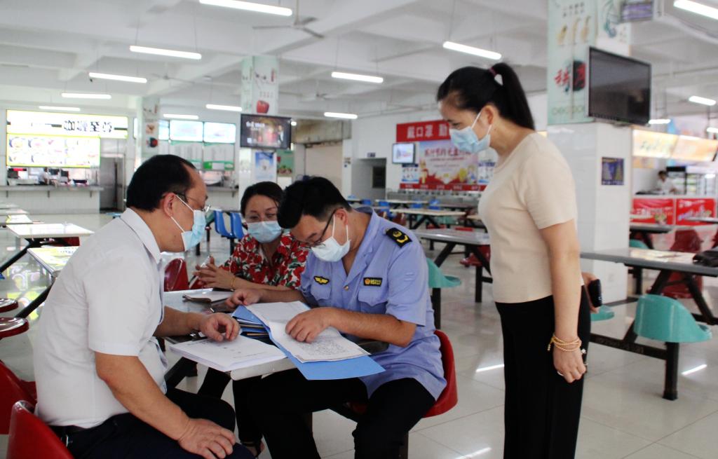 检查组一行仔细查看了学校疫情防控和开学准备工作的相关材料,先后到学校食堂、学生宿舍、校卫生所、隔离留观室等地实地检查,深入了解学校清洁消毒、错峰就餐、应急处理、隔离送诊、防疫物资储备等各项开学准备工作及疫情防控措施落实情况。