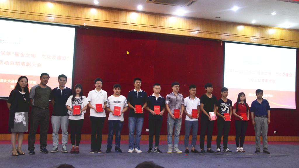 在此次“宿舍文明、文化双建设” 活动中,校学生工作处制定了详细的活动方案,会同相关部门对宿舍卫生、文明、安全、文化等方面进行不定期抽查,共评比出“文明宿舍”22个,“先进个人”28名。表彰大会上,来自各二级学院的获奖宿舍代表利用PPT课件汇报了本学年“双建设”活动的成果和经验做法。公路与轨道学院的获奖代表通过展示个性化的“宿舍规矩”,生动的诠释了她们打造的“家”文化,向大家展示了积极进取、乐观向上的学习生活态度;汽车与航空学院的女生们巾帼不让须眉,以“规范、责任、乐观、向上”作风,用实际行动演绎了一场关于宿舍的动人故事。交通与信息学院的学子们通过展示团结和睦的宿舍氛围、友爱互助的舍友情谊,让大家学会了珍惜,懂得了感恩。物流与交通管理学院的获奖代表通过展示“文化型宿舍、温馨型宿舍、进取型宿舍”的创建,体现出当代大学生热爱生活、活泼开朗、积极进取的态度;人文与艺术学院的获奖代表用充满艺术气息和温馨浪漫情怀的宿舍生活,向大家展示“双建设”的成果,让观众耳目一新。