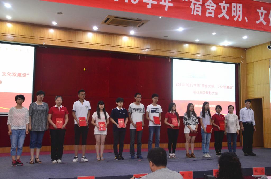6月17日,我校2014—2015学年“宿舍文明、文化双建设” 活动总结表彰大会在五楼学术报告厅隆重举行。校学生工作处、保卫处、团委、后勤中心、各二级学院相关负责同志出席大会并颁奖,主校区全体辅导员及学生代表参加了本次大会。