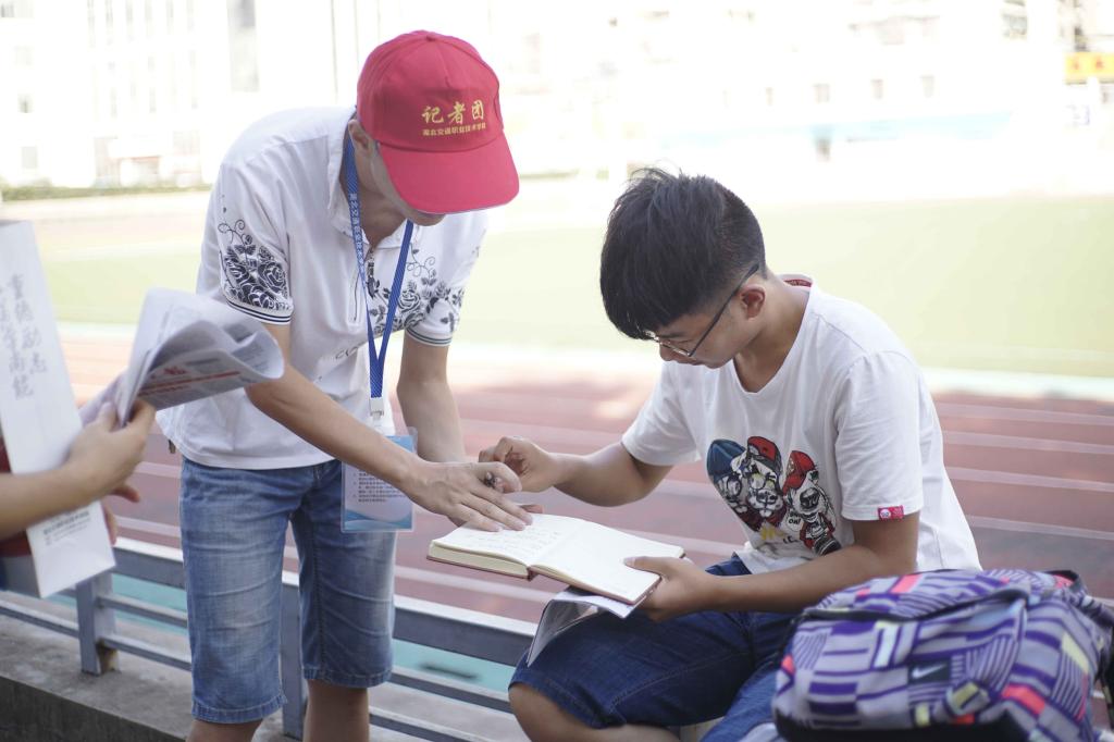 “同学你好,我们是交院学生记者,能采访你几个问题吗?”体育馆、测量长廊、绿色通道···有新生的地方,就有学生记者的身影,他们一只手拿着一摞厚厚的报纸,一只手拿着笔记本,穿梭在人群里,边走边看边问。