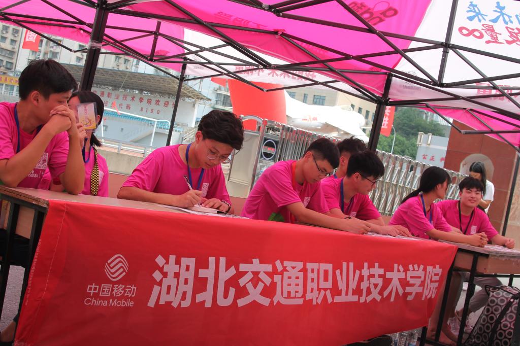 “学弟,来,这给我吧!”一新生背着书包,拖着行李箱,提着大行李袋正吃力地走在去往宿舍的路上,见状我校交通信息学院柯剑同学二话不说接过其手上的行李袋,这样的场景在我校新生迎新现场处处可见,他们便是迎新过程中一道靓丽的风景线——志愿者。