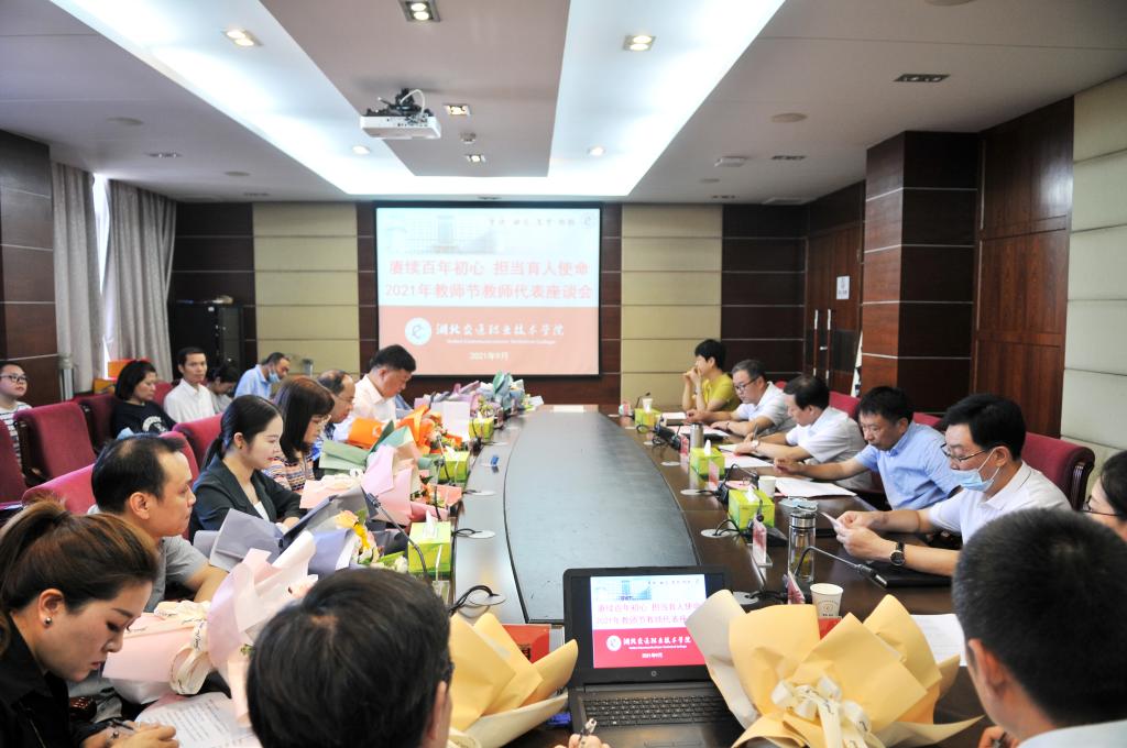 座谈会上,校长陈方晔宣读了慰问信,转达了省交通运输厅对我校教职工的节日祝福和关怀慰问;党委书记为执教30年的教师颁发水晶纪念牌,感谢他们对学校长久以来的辛苦付出;全体在家校领导和与会教师代表就学校发展、教师责任、学生培养等进行了深入交流;教师代表唐涛、江舸、石小平、陈六明、程玲、梅晶、黎俊峰、王喆、丁勇、杨尧波在发言中,纷纷结合自己从教经历,交流了对教师这个伟大职业的理解和感悟,表示将继续牢记使命,忠于职责,立足岗位,用实际行动为学校的改革发展贡献力量。
