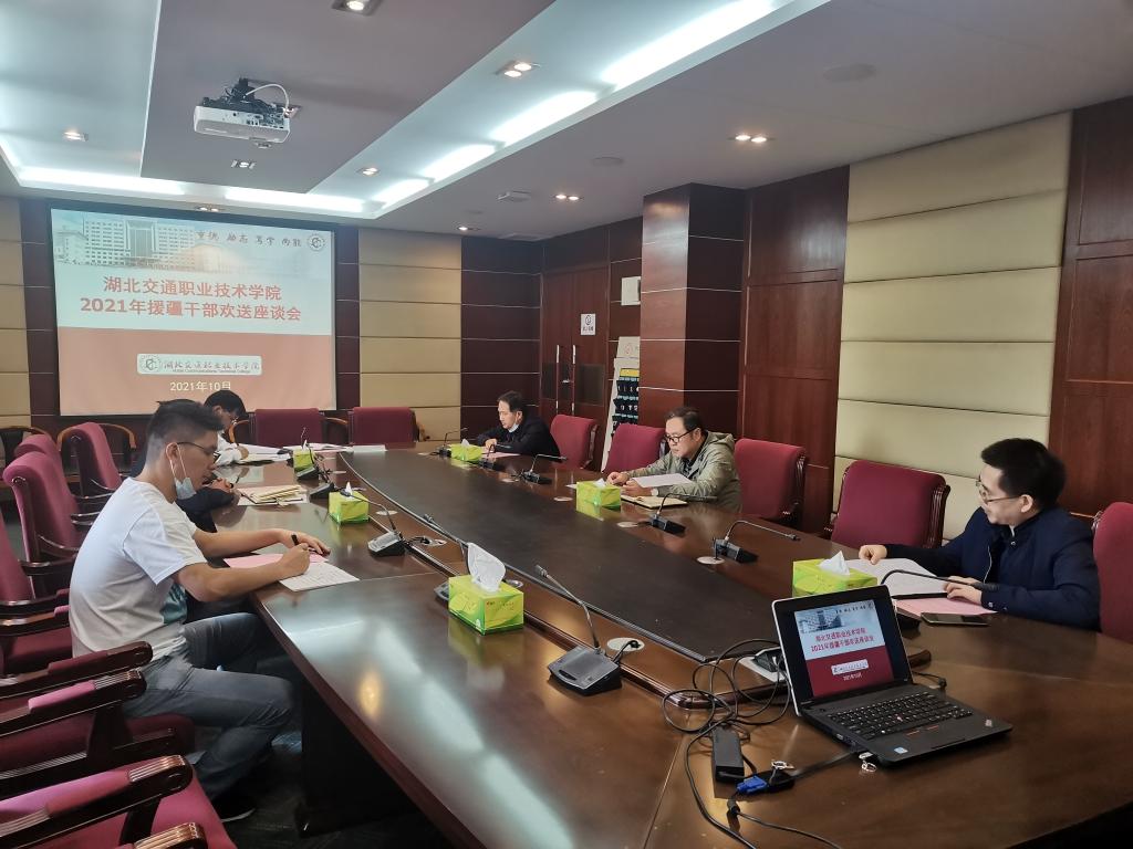 10月9日下午,学校在二号会议室召开了援疆干部欢送座谈会,欢送汽车与航空学院马进、余德林两位同志赴新疆博州职业技术学院开展支援建设工作。校党委副书记、副校长李全出席欢送会,相关部门负责人参加座谈。