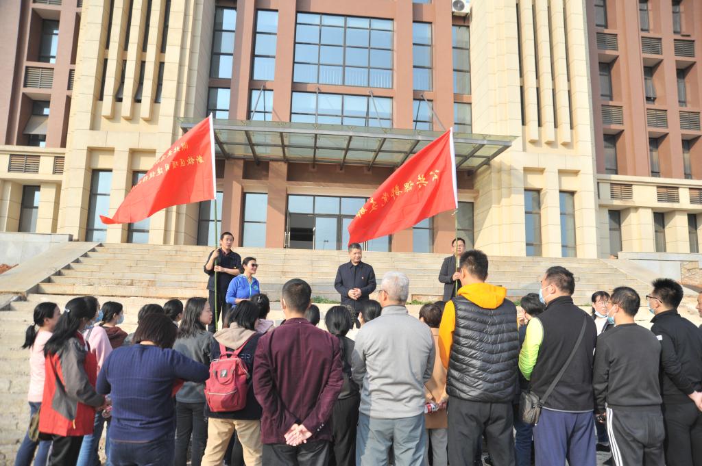 11月18日,公共课部党支部和新校区建设指挥部党支部在新校区联合开展11月份主题党日活动,活动由公共课部支部书记龚韵枝主持。学校副校长王孝斌在新校区行政楼前为全体教职工讲了一堂生动的党课。
