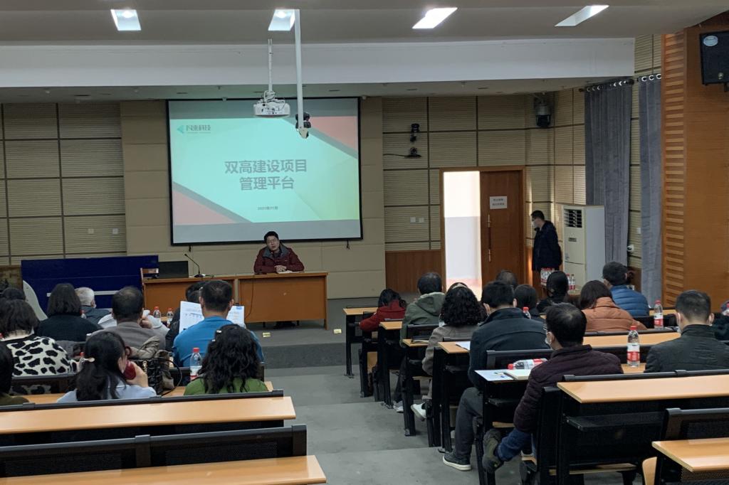 为进一步落实《中国特色高水平高职学校和专业建设计划绩效管理暂行办法》(教职成[2020]8号)文件精神,助推我校“双高计划”项目建设,11月25日下午,我校在1号楼A0314教室成功举办“双高建设项目管理系统”使用培训会。“双高”10个项目组牵头部门、建设部门负责人和联系人,各二级学院(含专业群)院长、分管双高副院长及联系人参加了会议。