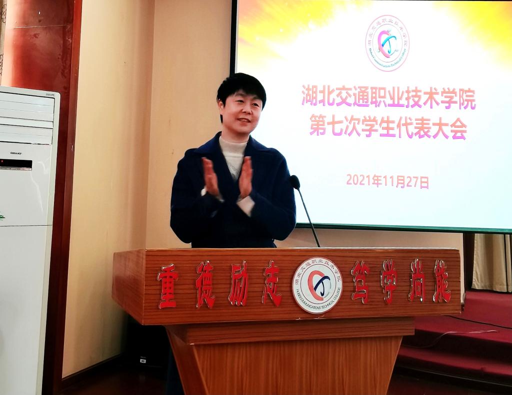 谢彤在会上作了讲话。她对大会的召开表示祝贺,就我校学生会一年来取得的成绩给予了肯定,并对下一步工作提出三点指导意见:一是重德树人,做同心同行的国之栋梁;二是励志修心,做矢志奋斗的交院青年;三是笃学明辨,做有为有位的学习标兵;四是尚能力行,做全面发展的先锋模范。