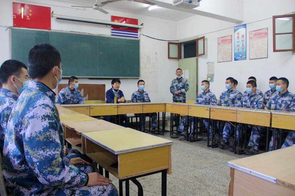 会谈结束后,谢彤看望了联系学生何于、李奕飞,她亲切地询问了他们的学习、生活状况,鼓励他们要积极乐观,在校期间继续加强专业学习,提升综合素养。联系同学表示一定谨记谢校长的建议,多与教师和同学们交流,争取早日成为合格的海军指战员。