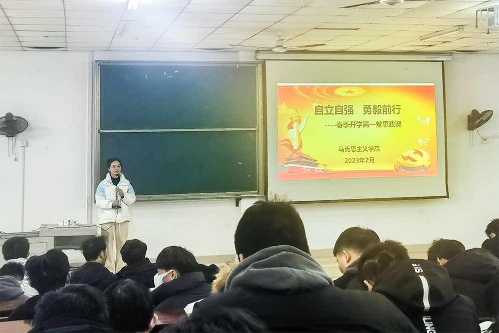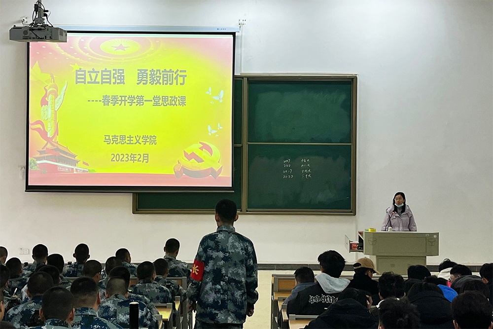 为深入学习贯彻习近平新时代中国特色社会主义思想和党的二十大精神,马克思主义学院面向学校全体学生组织开展以“自立自强 勇毅前行”为主题的2023年春季“开学第一堂思政课”。