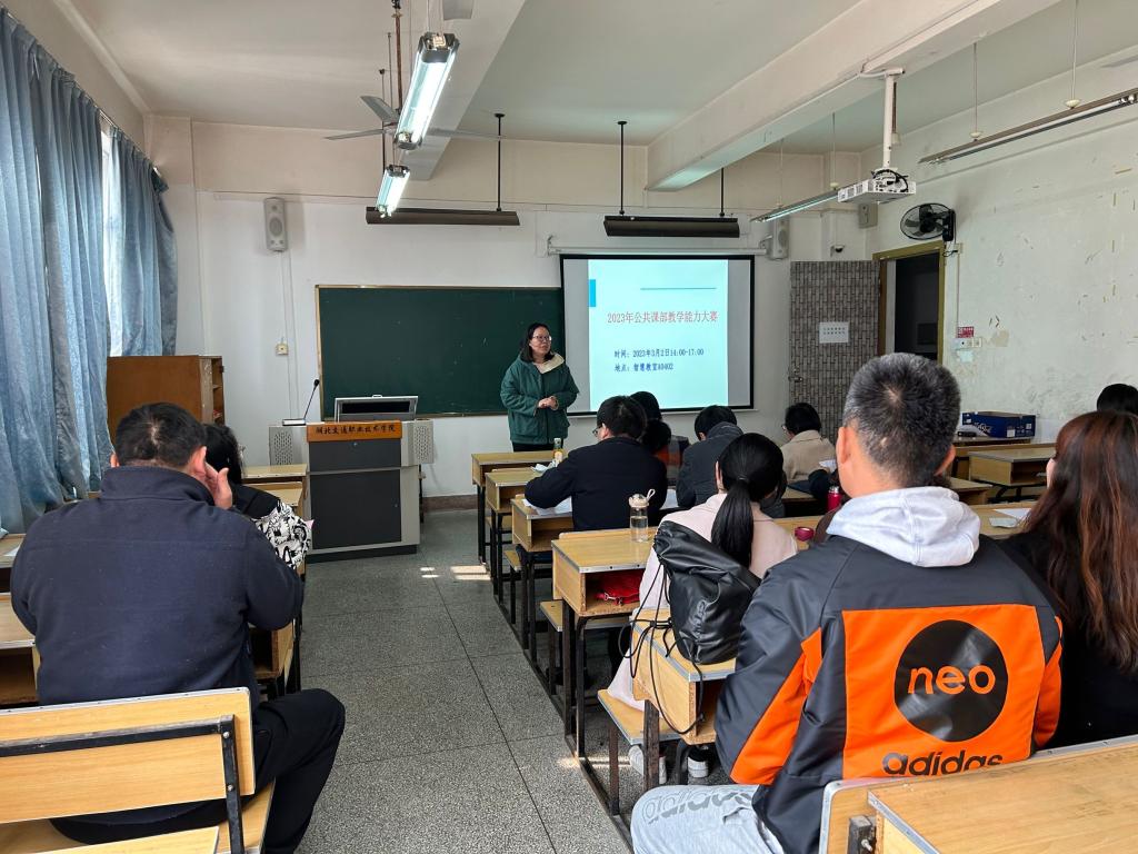 为贯彻落实全国职教大会精神和《国家职业教育改革试点方案》,通过以赛促学、以赛促教,强化教师教学、科研能力,提升参赛技能,更好地遴选出优秀教师团队备战校赛和省赛,3月2日下午,公共课部在智慧教室举行了课部2023年教学能力比赛,为教师们提供了相互学习、共同进步的平台。比赛由公共课部党支部副书记唐艳主持,共6组教师团队参赛,每组3人,其中5组参加公共基础课程赛项、1组参加校本特色型课程赛项。比赛邀请了校内专家教授田文、熊文林、王新文、汤名权、吴启圣等人组成评委组。