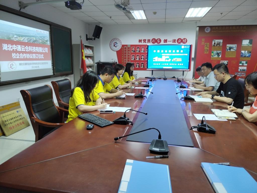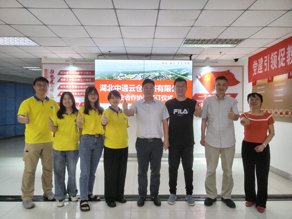 为深化校企合作,推进产教融合,凝聚育人合力,5月9日上午,中通云仓科技华中大区人事行政部负责人周燕一行4人莅临我校,与我校签订校企战略合作协议,双方就订单培养、实习实训、师资培训、社会服务等方面达成共识。