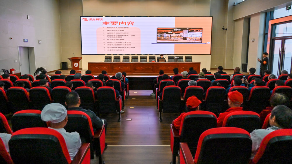 此次讲座邀请了武汉华大餐饮公司执行总经理陈智慧女士进行主讲,她围绕餐饮管理、从业人员健康卫生、食品采购、食品储藏、后厨设备与就餐环境等方面,详细讲解了风险分析及应对策略解,并普及了食品安全知识,陈智慧还结合近年来食品安全事件进行了案例分析,播放了《消防安全》警示片,以提高食堂管理人员、从业人员安全防范意识和应急避险能力。