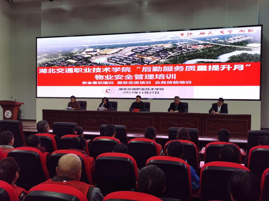 为积极响应学校倡导的“后勤服务质量提升月”活动,提升后勤物业服务质量,11月27日下午,我校后勤中心在藏龙岛校区图书馆学术报告厅开展了物业安全管理培训会。后勤中心相关同志、物业公司经理、以及全体物业员工参会,培训会由后勤中心副主任王蕴主持。