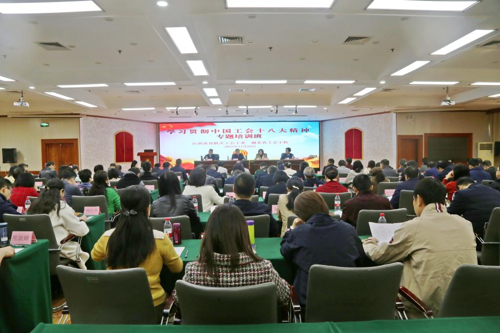 为深入学习贯彻习近平总书记考察江西重要讲话精神,学习贯彻中国工会第十八次全国代表大会精神,提高省直机关工会主席政治理论和业务水平,11月19日至24日,江西省直机关工会主席学习贯彻中国工会十八大精神专题培训班在我校教培中心成功举办,江西省直各单位工会主席130余人参加培训,教培中心负责人沈俊岭、湖北省工会干部学校副校长李春梅、江西省直机关工会工委主任唐颖罡、江西省直机关工委副书记熊育杰出席开班仪式。