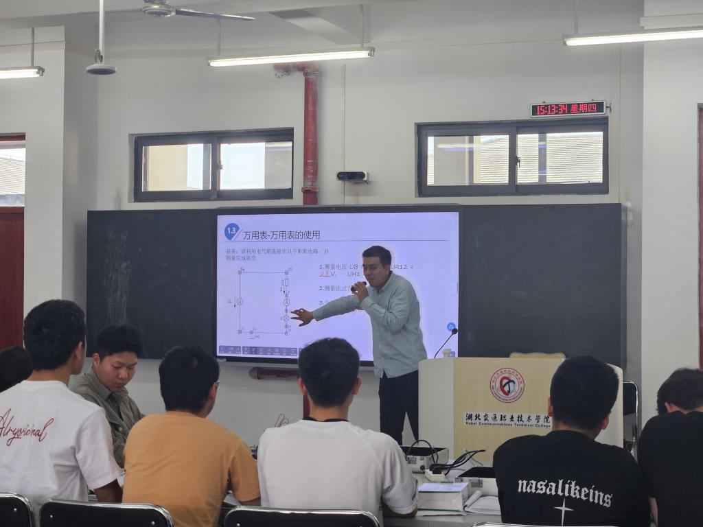 吴佳俊老师以生动的案例为引导,深入浅出地讲解了如何运用万用表对车载网络系统进行检测。他利用实训设备结合实际操作展示了车载网络系统进行检测的方法,理实一体化的教学使得抽象的理论知识变得直观易懂。