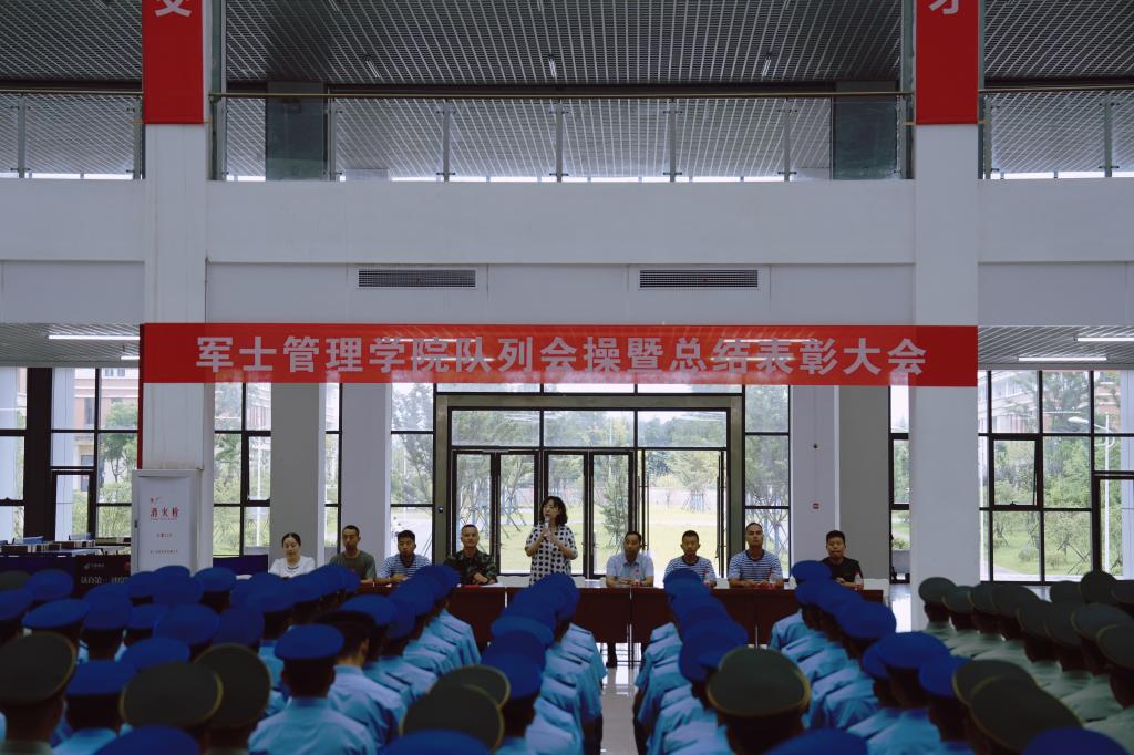学工处负责人刘菲作总结讲评,她高度肯定了军士生在本学期各项考核评比中所展现的优秀精神风貌,勉励军士生进一步坚定入伍信念,明确入伍目标,早日实现从校门到营门、从操场到战场的无缝对接。