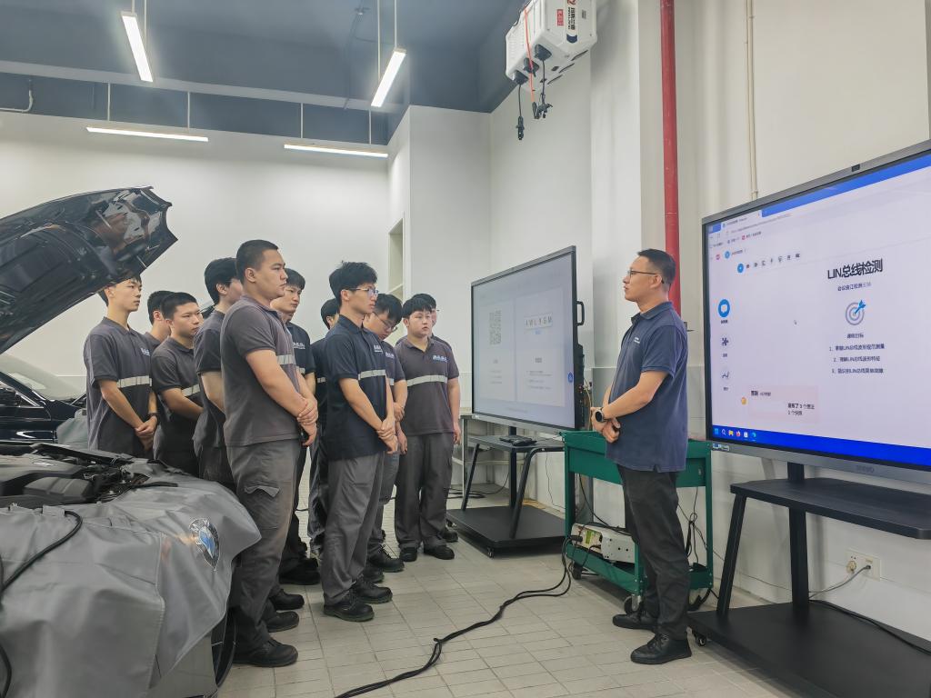 6月27日上午,汽车与航空学院宝马项目技术培训师姜松舟在宝马武汉培训基地技术车间展示了一场主题为《LIN总线测量》的理实一体化公开课。学校教务处、督导室及各学院骨干教师齐聚一堂,共同观摩。