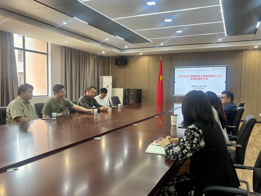 近日,武汉长颈鹿装饰工程有限责任公司高层团队到访建筑与艺术设计学院,就环境与艺术设计专业建设、校企协同育人及产学研合作展开深度交流,建筑与艺术设计学院负责人谭明铭及相关教师参加座谈。