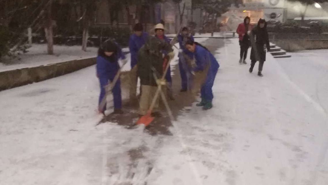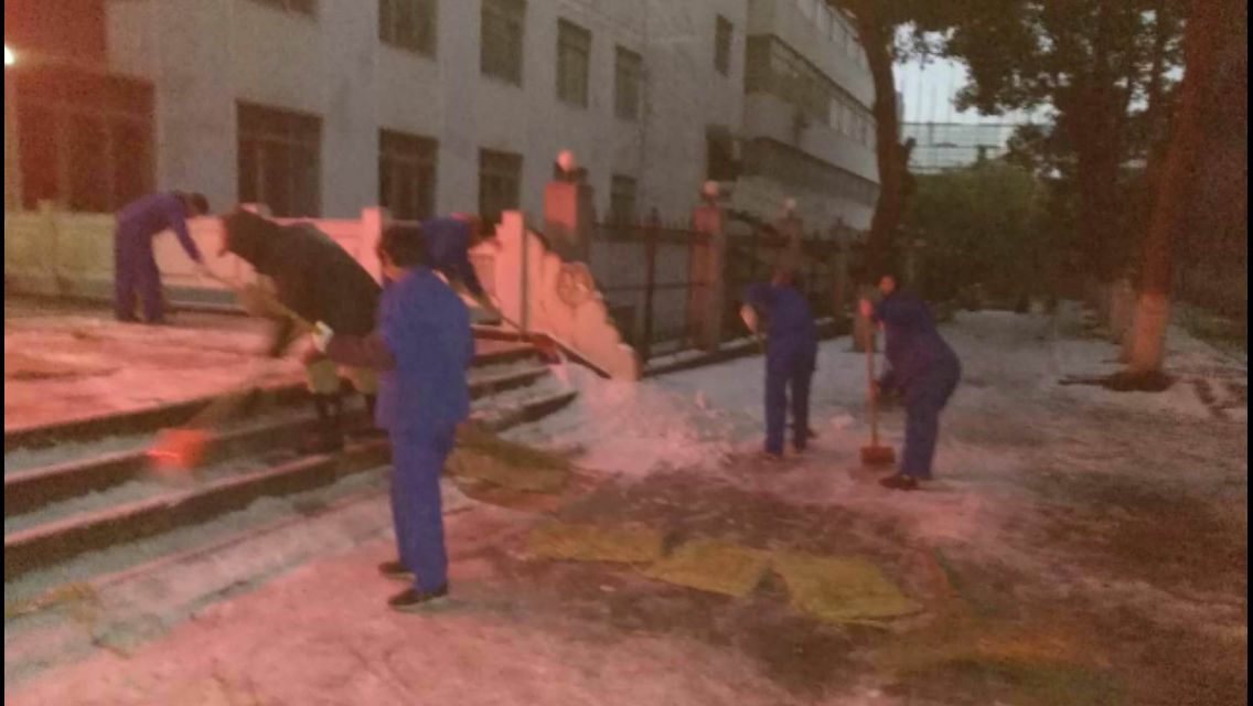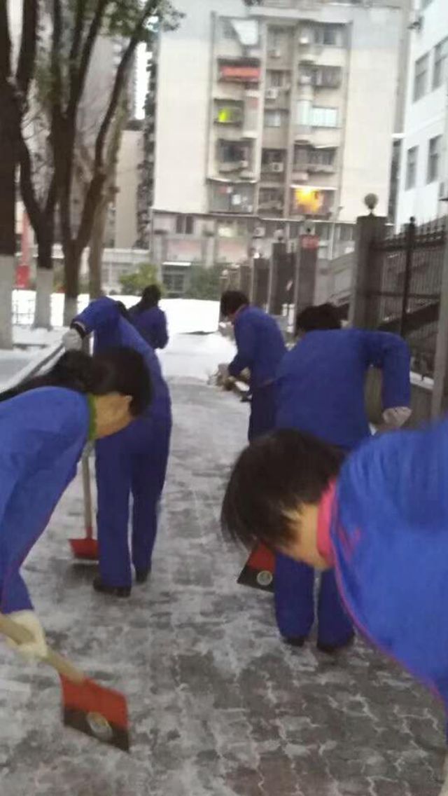 2018年武汉的第一场大雪让学校银装素裹,显得分外美丽,但也给师生带来诸多不便,为了不影响正常的教学秩序,确保师生出行安全,1月26-28日,后勤中心每天组织职工开展扫雪除冰活动,他们趁着老师上班前和学生起床前,克服天寒地冻,放弃休息,天还没亮就主动拿起除雪工具,对校园各通道路口进行扫雪除冰。