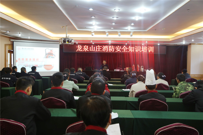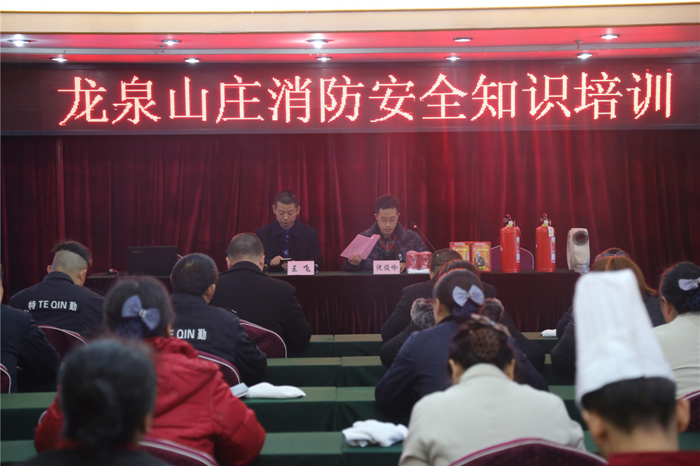 为做好今冬明春火灾防控工作,确保节日期间宾客人身和财产安全,12月30日,龙泉山庄(教培中心)邀请消防专家进酒店,进行消防知识讲座和实操演练培训。山庄在家领导、各岗位职工共60多人参加了此次培训。