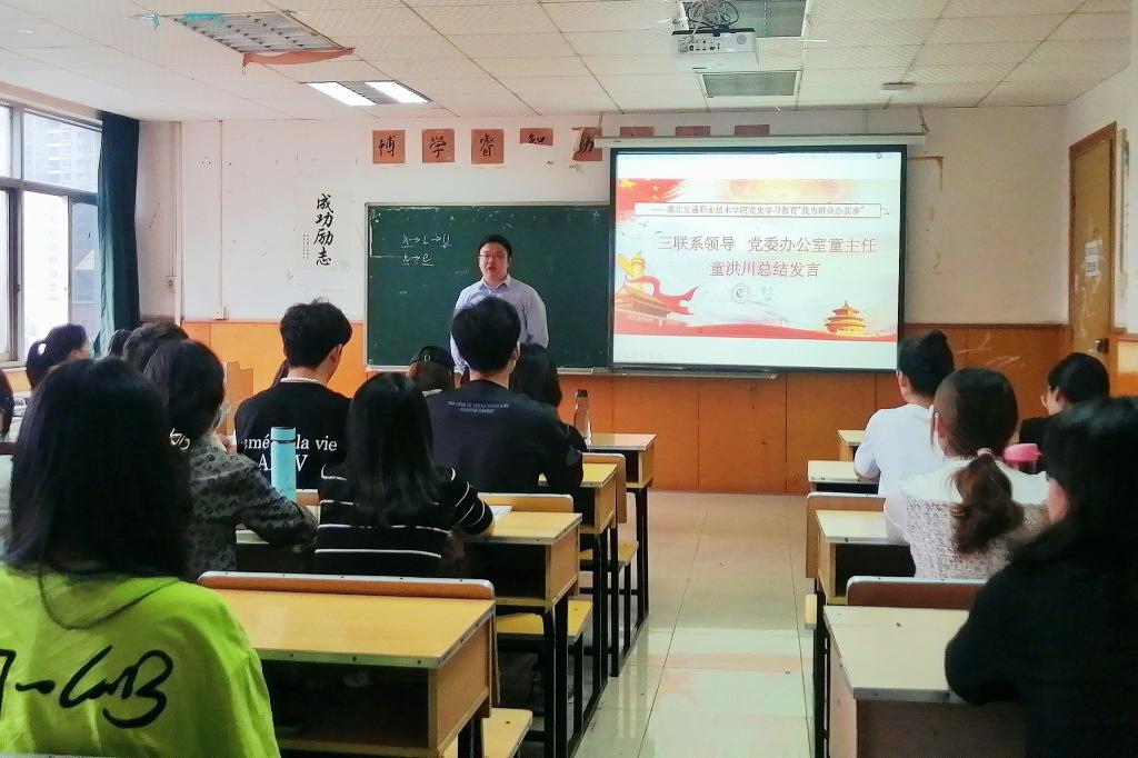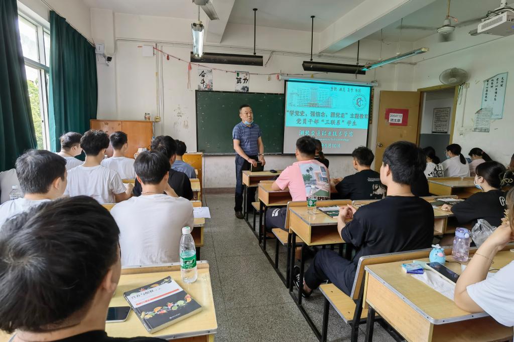 童洪川同志参加了1904021班的“学党史、强信念、跟党走”的主题班团活动,勉励同学们一是要学党史、悟思想,汲取力量,树立坚定的理想信念;二是要学党史、办实事,以寝室为小目标,整理好个人内务,做好寝室的卫生服务工作,做一个德智体美劳全面发展的新青年;三是要学党史、立大志,学好专业知识,掌握专业技能,做好职业生涯规划,脚踏实地,顺利完成即将到来的顶岗实习任务。