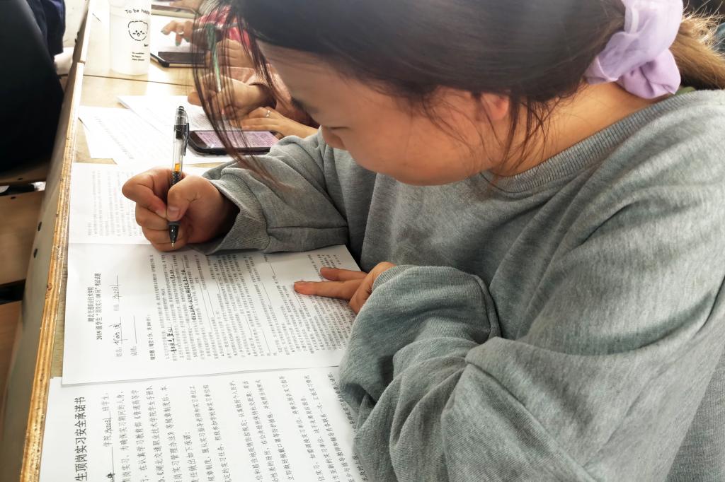 陈桃作顶岗实习动员讲话,她结合典型事例从安全教育、顶岗实习疫情防控、提高就业竞争力、征兵入伍政策宣传、报考专升本等六个方面进行实习动员和工作安排,希望学生增加诚信意识,珍惜实习机会,修炼敬业精神,培养良好习惯,认同企业文化,实现角色转换,积累工作经验;尊重师傅,服从管理,严格遵守企业管理制度和设备操作规程;与师傅、指导教师、辅导员老师多沟通,与家长勤联系,做好疫情防控常态化个人卫生防护工作,做好个人健康监测和管理,正确处理生活、学习和工作中可能出现问题。会后,全体学生进行了“顶岗实习100问”考试。