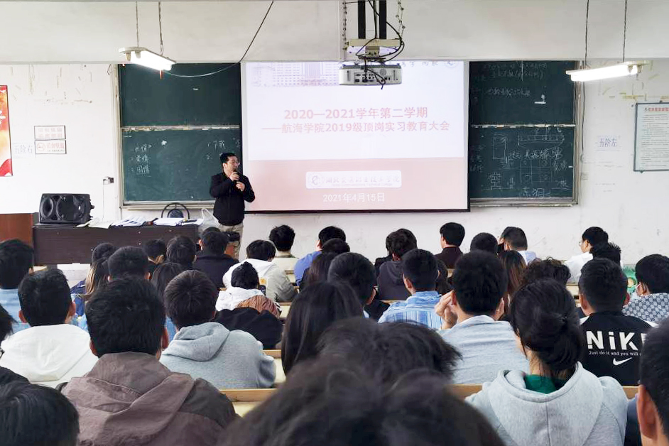 为确保2019级学生顶岗实习工作顺利开展,帮助学生了解顶岗实习要求和就业政策,引导学生树立正确的就业观和择业观,4月15日,航海学院组织召开2019级顶岗实习教育大会。会议由学生科科长陈桃主持,教学院长张洋、2019级顶岗实习班班主任、180名学生参加了会议。