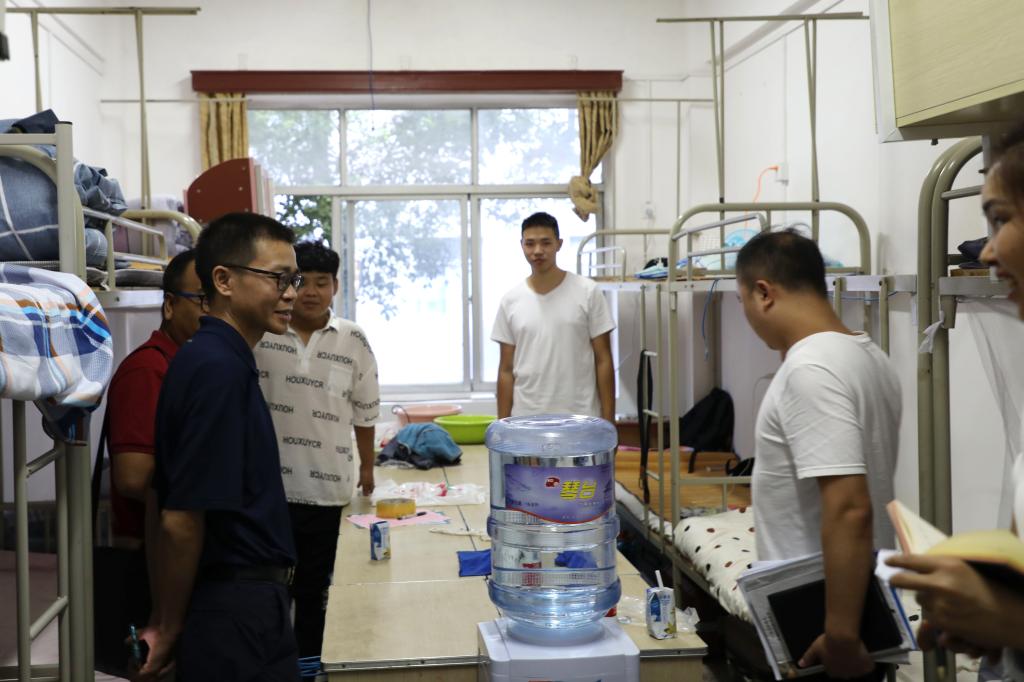 为第一时间了解新生入学生活、思想状况,表达对新生的热烈欢迎和贴心关怀,9月6日,新生报到第二天,汽车与航空学院负责人李建明、马进等与新生辅导员、专业老师代表一起走访了2019级新生宿舍,与新生进行深入交流。
