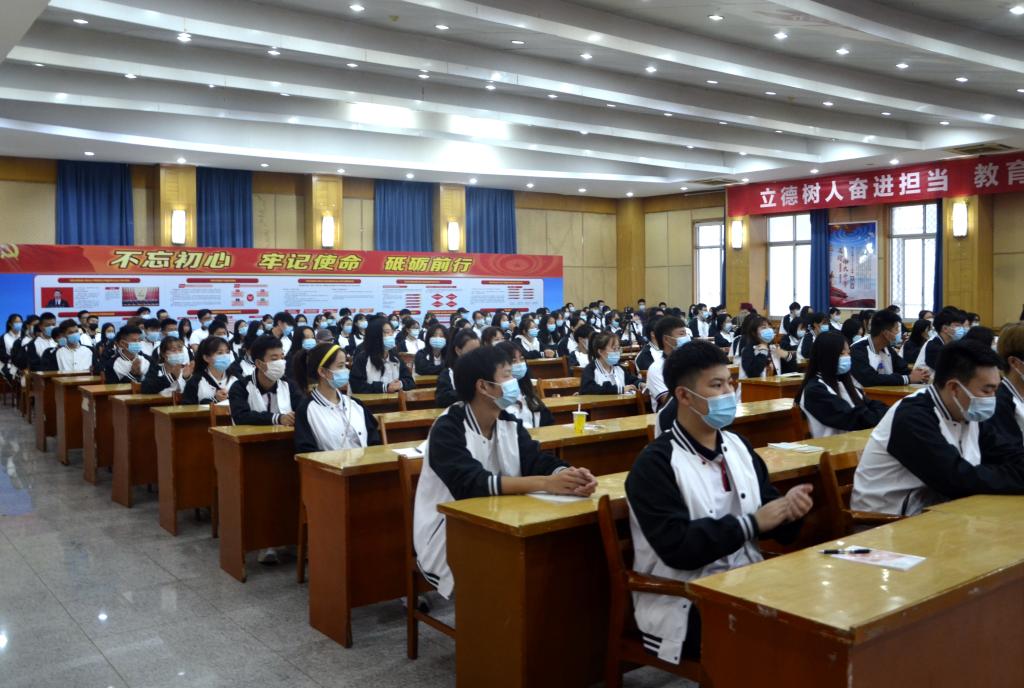 会上,2019级优秀学生代表谢子欣、2020级新生代表朱高甲分别上台发言。761名新生在19级士官生方淼的带领下,集体宣誓,承诺将谨记校训,传播物交文化,用铮铮誓言翻开了他们大学生活的第一页。