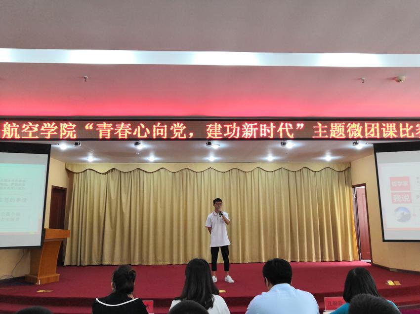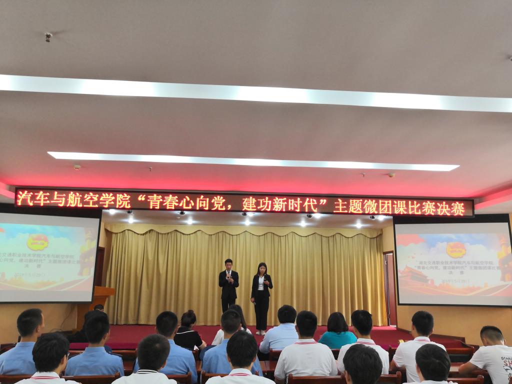 为庆祝新中国成立70周年,学习贯彻习近平总书记在纪念五四运动100周年大会上的重要讲话精神,5月29日中午,汽车与航空学院在培训楼多功能厅举办了“青春心向党,建功新时代”主题微团课比赛决赛,校团委书记李阳、汽车与航空学院青年教师以及团员学生代表参加了本次活动。