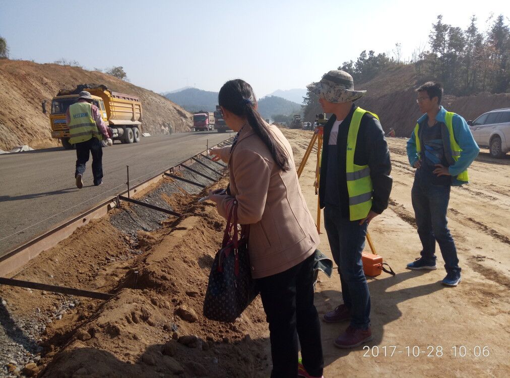 《路面施工技术》是我院推进“两个行动计划”建设工作立项的省级精品在线开放课程。10月26日至11月1日期间,课程项目组针对该课程“工”“学”紧密结合的亮点及特色栏目的设计,精心采集了课程建设所需的现场施工资料。此次深入工地一线时间紧任务重,施工环境恶劣等不利因素较多,课程组得到施工单位、监理单位及业主单位的多方支援与帮助,攻坚克难、齐心协力完成了施工现场70多个视频采拍、15个专家讲座和访谈的拍摄工作。