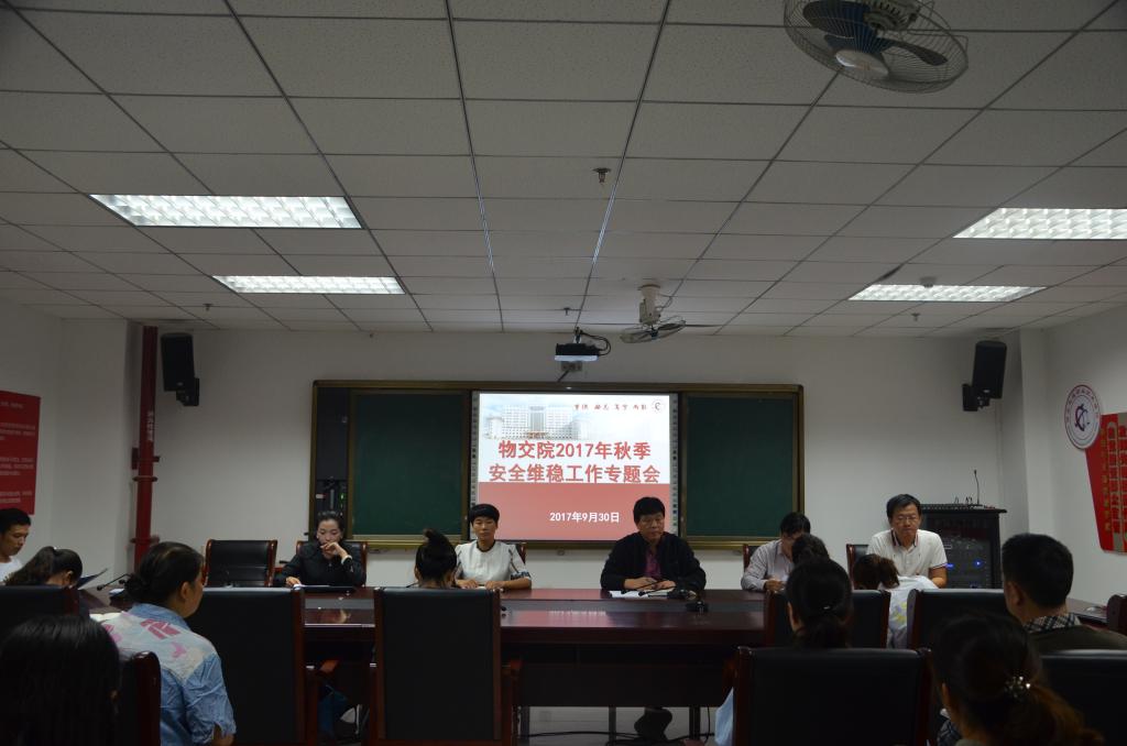 物流与交通管理学院把贯彻落实学校秋季安全维稳工作会议精神迅速转化为具体行动。9月30日中午,物交院召集全体教师和辅导员集中学习传达学校秋季安全会议精神,开展安全大排查、大整治活动。