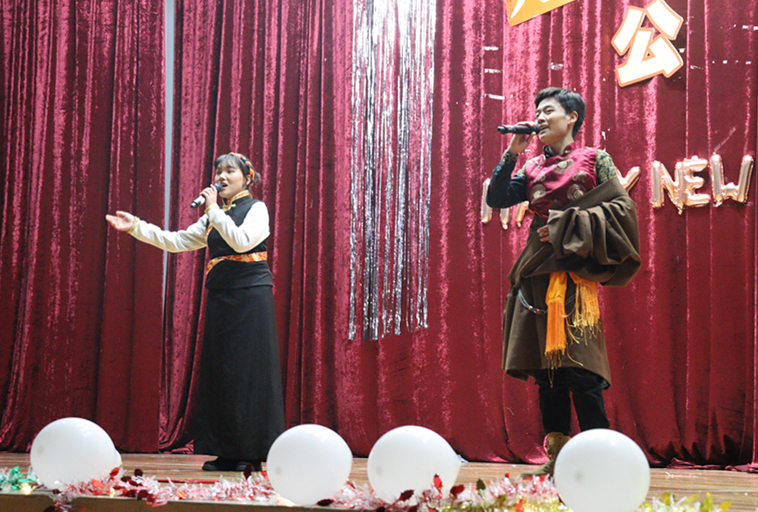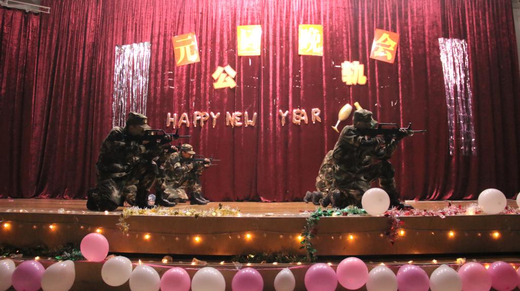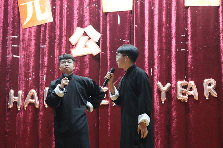 在程海潜热情洋溢的新年致辞后,晚会拉开帷幕。激情的演唱、火热的舞蹈、风趣的相声、精彩的乐器演奏等各类节目轮番上映,让人眼花缭乱:充满活力的歌曲《eye nose lips-太阳 》点燃了现场气氛;相声表演《优秀学生》中,演员们诙谐的语言、搞怪的动作,以及和现场同学们的积极互动,把晚会推上了一个小高潮;藏族学生激情献唱《草原的羊群》,悦耳的音乐,将民族风采展现的淋漓尽致……最后在全体工作人员和表演人员《追梦赤子心》的歌声中圆满闭幕!