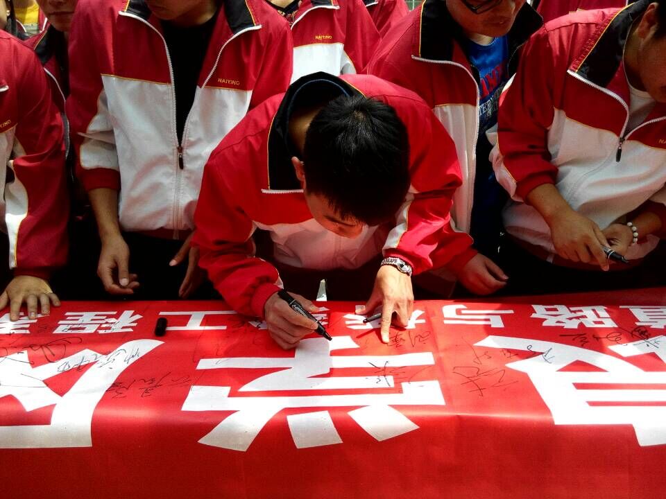 鲜红的红幅,简而有力地为现场渲染出庄重的气氛。此次宣誓由徐博文同学带领入党积极分子进行公开承诺。听着阵阵激昂的宣誓声,再看看承诺书用毛笔撰写的“党课十不准”,一点一撇,一勾一捺,每一字都刻入人心。每位同学都用发自内心的声音抒发了对党的忠诚决心,面对红幅,大家接受了一次特殊的洗礼。入党积极分子纷纷在红幅上签上自己的名字,表达了自己要恪守在红幅下的诺言,自觉将党课的“十不准”发挥到课堂上,营造积极向上的学习环境,打造高质量的课堂,并且更加严格的要求自己,努力使自己早日成为一名优秀的共产党员。