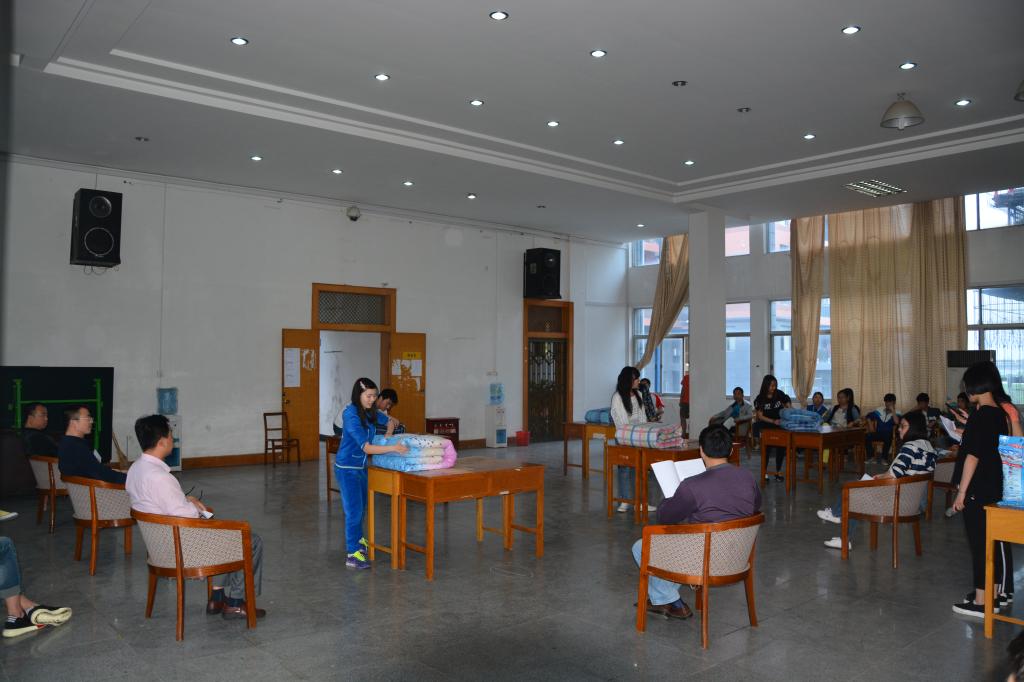 5月5日,在学校二楼多功能厅,60多名学生参加了学校举办的“从我做起,从点滴做起,从整理内务做起”学生叠被子比赛活动。该活动旨在丰富校园宿舍文化生活,陶冶同学们的情操,增强同学们的集体荣誉感,使同学们从小事做起,养成健康、良好的生活习惯。