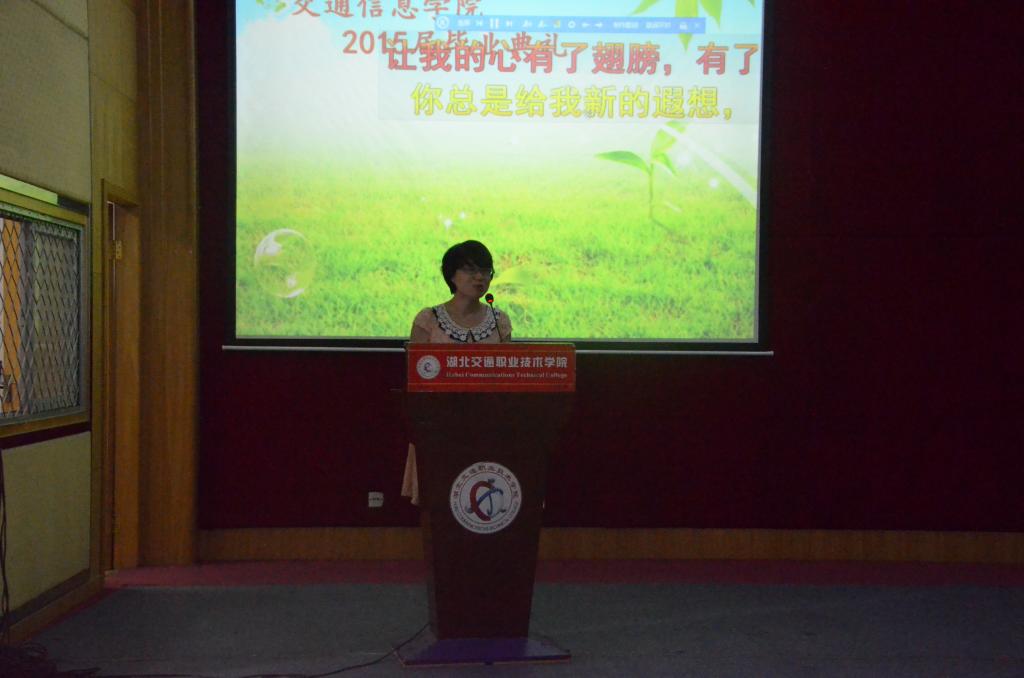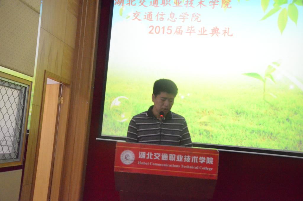 本次毕业典礼由交通信息学院分团委书记刘桥老师主持。毕业典礼开始前,会场播放了一段交通信息学院全体教师给12级毕业学子的祝福视频。视频中老师们殷切的期望,诚恳的话语表现出老师们对12级毕业生的浓浓师生情!祝福同学们成长成才,越来越好!十年树木,百年树人!问昔日桃李如何,今已成大树!这是每一个老师对自己学生的最殷切希望!