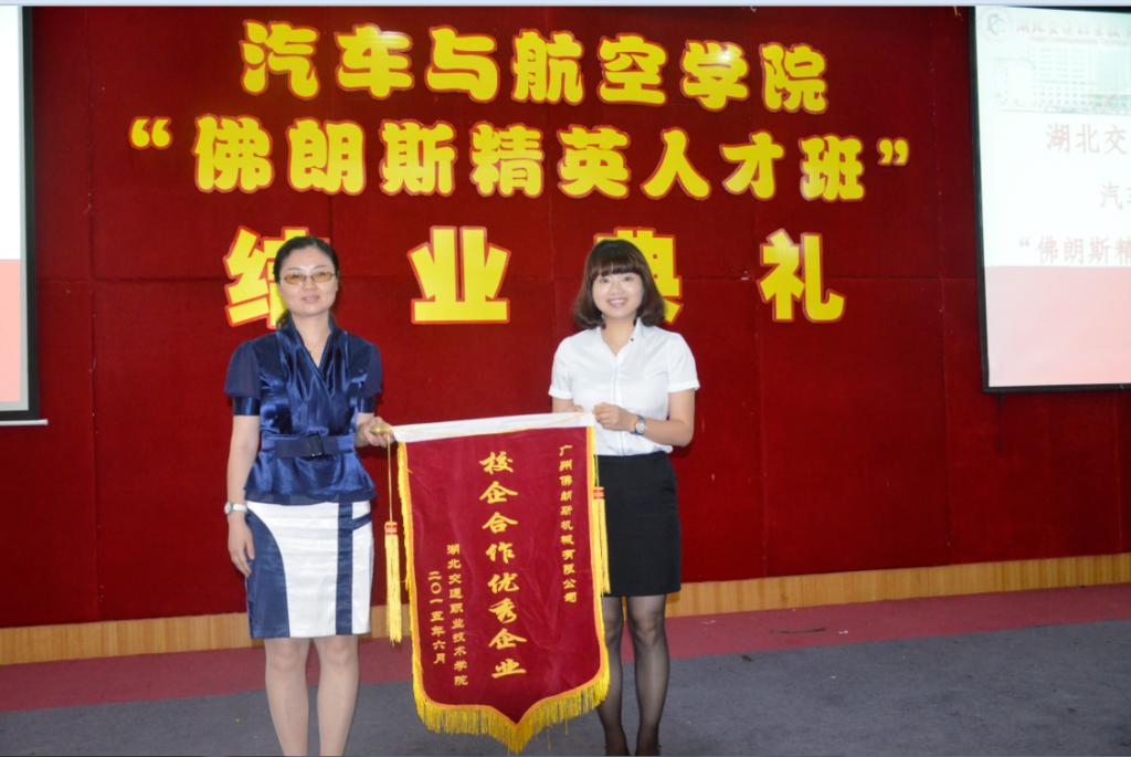 佛朗斯集团行政中心总监侯泽燕女士宣读了优秀学员表彰决定,并为获奖学员颁发了“佛朗斯之星”奖杯和奖学金。我校合作交流处代表学校为广州佛朗斯集团授予了 “校企合作优秀企业”锦旗。