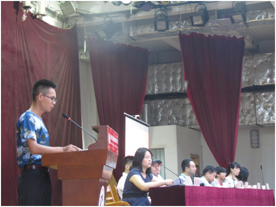 新生代表高雄上台发言,他向全院新生说出了自己刚刚进入大学生活的感受以及自己对未来大学生活的规划以及目标,并表示在大学里坚定信念,努力做最好的自己,赢得了在场新生的热烈掌声。