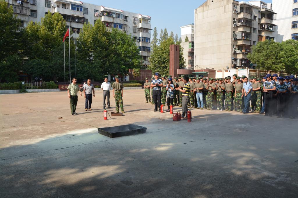 为进一步提高学生消防安全意识、防范自救能力,在新生军训期间开展了“挥舞青春、平安校园、消防安全跟我走”消防安全宣传系列活动。9月16日下午,系列活动之一“消防知识讲座”在操场举行,学校邀请黄陂区消防支队杨教导员,到军训场地为全体学生工作人员、保卫处部分人员、宿舍管理人员、全体承训教官和全体2015级新生参加了讲座和演练。