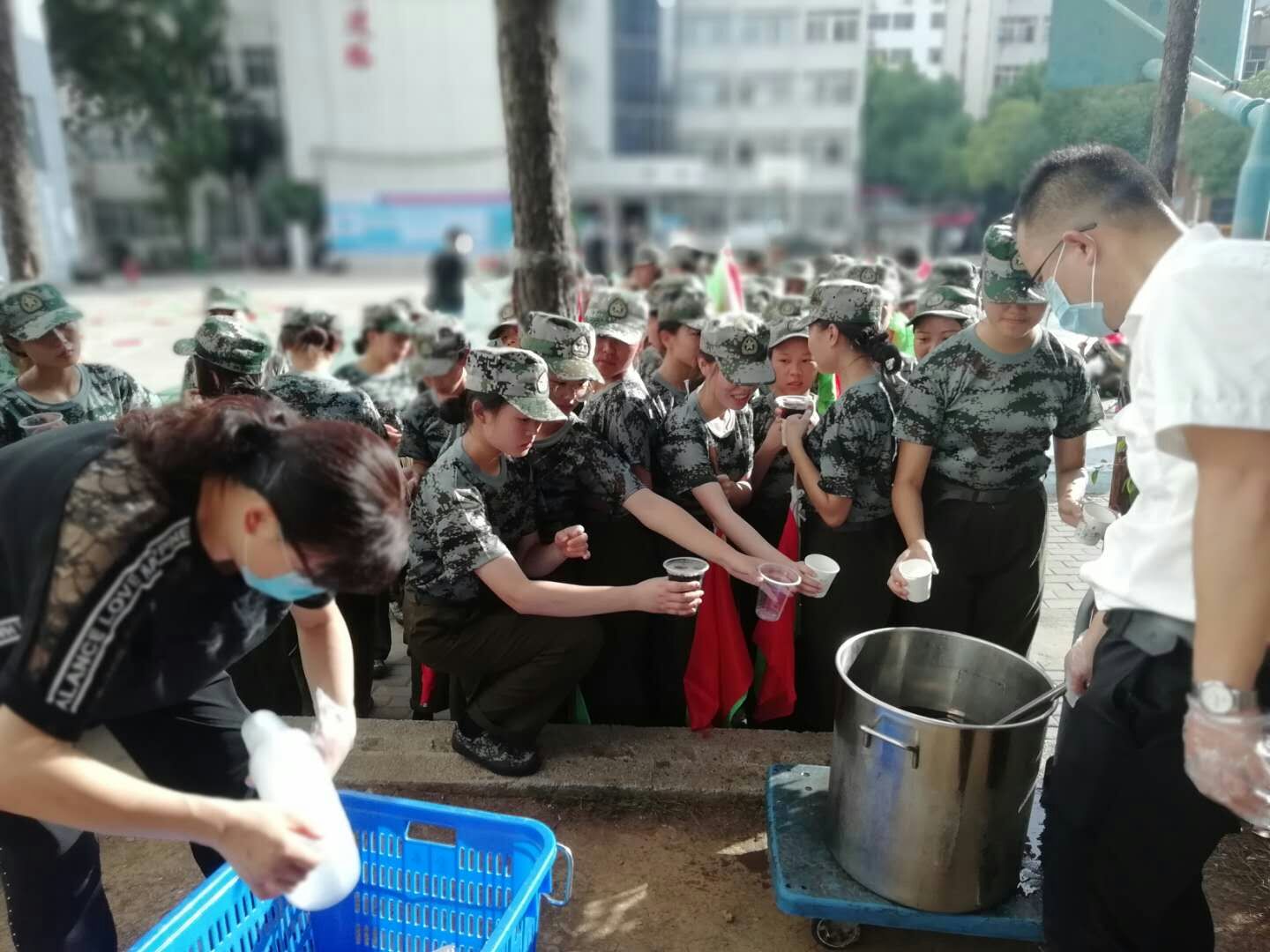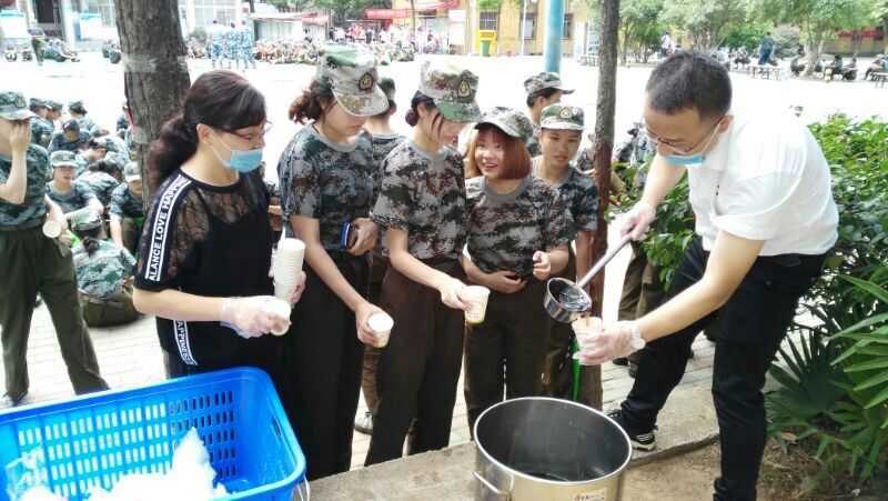 9月18日上午,我校2018级新生在烈日下进行军训。为让刚离开父母的新同学感受到学校的关爱,我校后勤部门工作人员为同学们准备了“解暑神器”——绿豆汤,为学生们送上一抹清凉,获得新生一致好评。