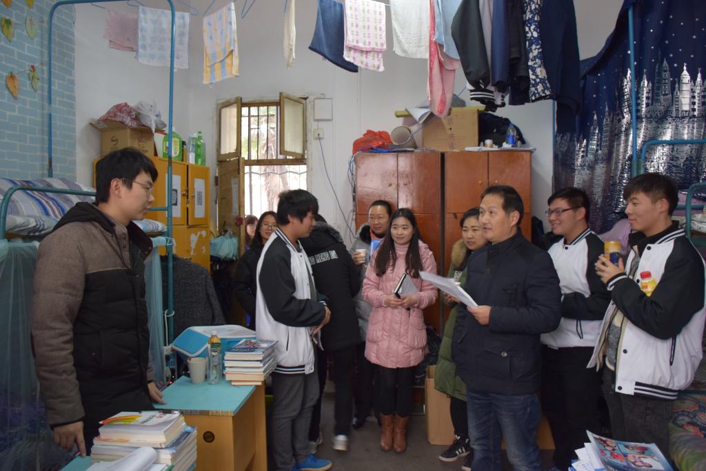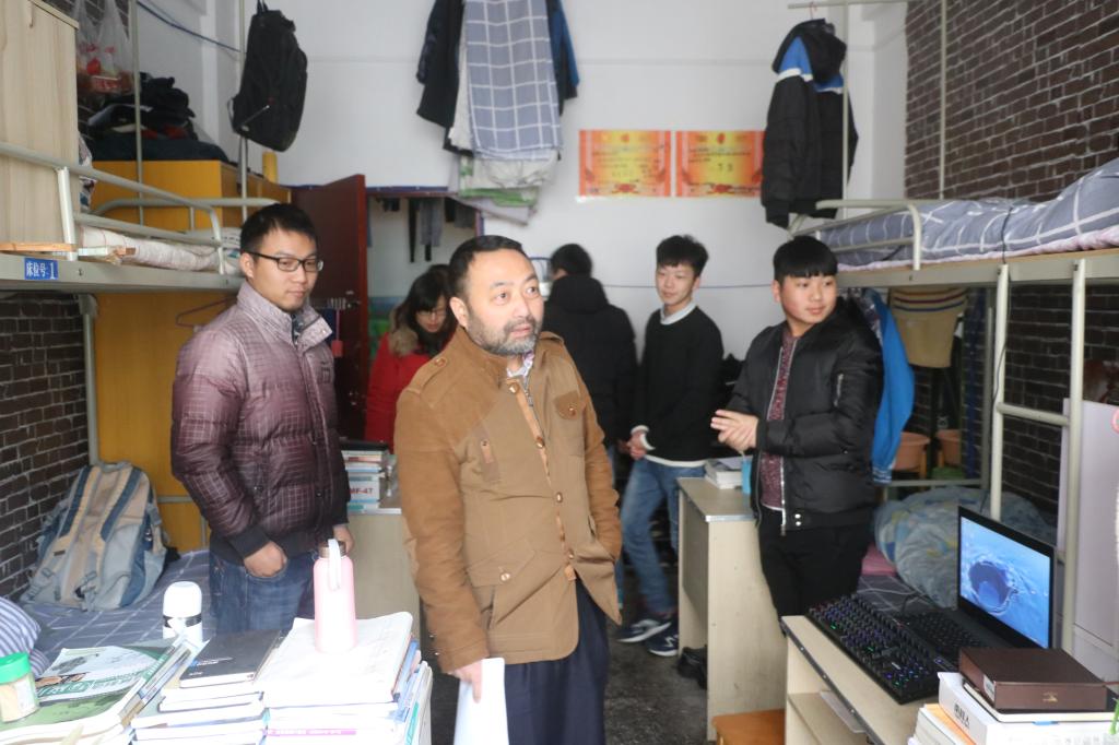 12月14日中午,汽车与航空学院院长上官兵、副院长曹登华带领全体辅导员和班主任深入学生宿舍开展安全专项检查。
