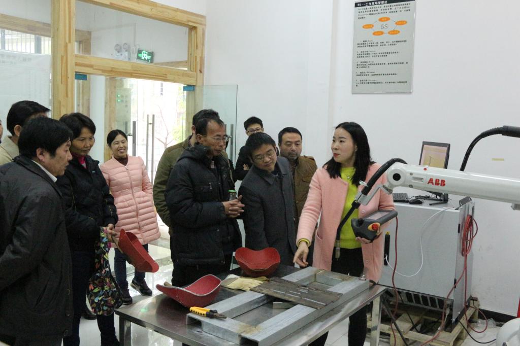 在工业机器人实训室,杨程面对工业机器人的实物,将工业机器人的理论知识进行了一一介绍,并现场展示了工业机器人的操作方法。课间,机电一体化教研室的老师们共同参与,并对工业机器人理实一体化教学内容、形式、方法、配置等多方面进行探讨,现场气氛生动活跃。