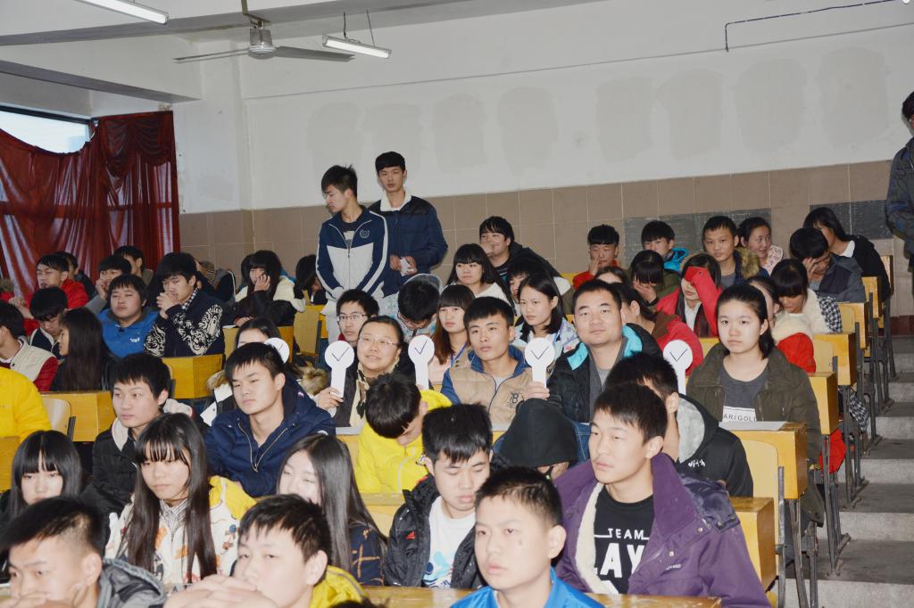 本次比赛由来自大学生管理委员会的刘文主持,来自北区不同年级的30位选手展开了激烈对决。赛前,团委老师杨威对选手们进行了热烈鼓舞。各个团队也高声呐喊各自的口号为本队加油助威。随后比赛正式开始。第一轮中,大专的选手略显不足,中专队伍拔得头筹。在第二轮比赛中,选手们逐渐适应了赛场氛围,不负众望,拿出了永争第一的气势。紧接着,比赛进入白热化阶段,听写的难度增加,听写的同学心情也随之更加紧张,他们在台上的每一丝犹疑,都牵动着台下观众的心,他们写对一个,都会收到来自队友和观众的热烈掌声。现场气氛活跃而扣人心弦。经过两个小时激烈对决,1401最终荣获本次大赛团体第一,1501019为团体第二,15010110荣获团体第三。